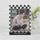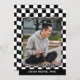 Unique and trendy congratulations graduate announcement card with a classic black and white racing flag checks pattern. With room to customise or personalise with a photo, the name of the graduate, class graduation year, high school and future college or university name. Let the family, friends and neighbours know there is a happy graduate ready to conquer the world, and invite everybody to come celebrate the happy event with you!