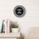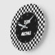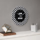This cool custom clock has a black and white chequered racing flag design. Click "personalise this template" to change the words and name to your own. If you need help with customisation, please email me at zazzlevibes @gmail.com Please visit our store QuiltWithMe for more unique gifts. Karen Hall