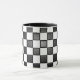 Black & white chequered mug with black handle and rim.