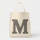 Black and White Chevron Letter "M" Monogram Tote Bag. Personalise your stuff with your initial in style and customise the background colour to suit your taste or décor.