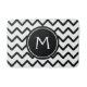 A modern bathmat featuring a timeless black and white chevron design that effortlessly complements any bathroom aesthetic. A circle emblem in the middle to add your initial.
