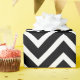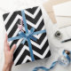 Custom wrapping paper rolls with chevron pattern in black and white for the holidays.
