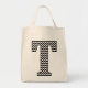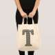 Black and White Chevron Letter "T" Tote Bag. Personalise your stuff with your initial in style and customise the background colour to suit your taste or décor.