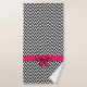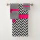 Black and White Chevron with Hot Pink Bow Bath Towel Set