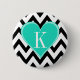 Black and White Chevron with Teal Heart Monogram 6 Cm Round Badge