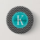 Black and White Chevron with Teal Monogram 6 Cm Round Badge