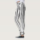 Black and White Circle Triangle Stripe Pattern Leggings. Simple black vertical stripes with small circles and triangles on a white background.