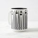 Black and White Circle Triangle Stripe Pattern Two-Tone Coffee Mug. Simple black vertical stripes with small circles and triangles on a white background.