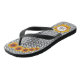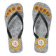 Flowers for your feet are featured on these whimsical flip flops. The background is made up of white circles, with a black outline. On the top, there are five Black Eyed Susans and at the bottom there is one larger flower with a monogram that can be customised.