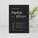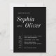 Black and White Classic Minimalistic Typography Invitation. A timeless and sophisticated invitation with a minimalist black-and-white design. Featuring a bold black background, elegant white typography, and classic serif fonts. The back showcases the couple’s initials for a personal touch. Customise this design with your personal info.