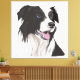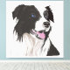 This canvas features my drawing of a Black and White Collie, based on my own pet Gypsy. It is a characteristic pose, showing her face from the side, panting in the anticipation of a game.