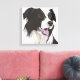 This canvas features my drawing of a Black and White Collie, based on my own pet Gypsy. It is a characteristic pose, showing her face from the side, panting in the anticipation of a game, also reflected in her gentle brown eyes. The canvas is available in a range of sizes