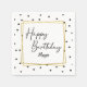 A modern stylish design, this birthday party paper napkin features scattered confetti polka dots in black over a white background. A golden double frame with a white background surrounds the text in feminine style. Lovely handwritten script type face spells out "Happy Birthday" in large lettering to add emphasis to the happy occasion. This versatile design is suitable for tweens, teens and adults. Personalise with the Guest of Honour's Name.