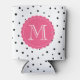 Black and White Confetti Dots Hot Pink Monogram Can Cooler