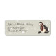 This winter address label design features a black and white country cat sitting among a vintage winter background of snowflakes and stars.