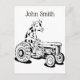 Black and white cow driving a tractor postcard