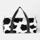 Black and white cow spots pattern duffle bag. Funny farm animal print design. Cute Birthday gift idea for cow lovers, cowboys and cowgirls. Personalise this print with your name, monogram or quote. Blotchy black and white cow hide skin image design. Handy for sports, gym , fitness, travel and more.