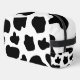 Black and white cow spots pattern toiletry bag. Funny farm animal print design. Cute Birthday gift idea for cow lovers, cowboys and cowgirls. Personalise this print with your name, monogram or quote. Blotchy black and white cow hide skin image design.
