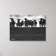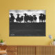 This beautiful black and white art canvas has an image of assorted cows and calf silhouettes standing in a row along a barbed wire fence on the Alberta, Canada prairies.