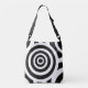 Tote your stuff in style with a cute cross body bag or shoulder tote. This super groovy bag features a fun pattern that has black and white swirls and circles. Different styles and sizes available.