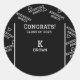 Here is a great way to celebrate your graduate. Custom black and white classic round sticker features the text, "Congrats! Class of 2025." It has a classic black background with an inspirational Adventure Awaits arrow pattern. Also, display your monogram and name in the middle of the sticker. Use the template to personalise.