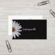 Add a stylish modern look to your brand. This business card has your business name in a script font and white daisy on a black background. Contact information is on the back leaving the front to draw attention to your brand.