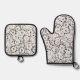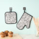 Black and White Daisy Pattern Towel Oven Mitt & Pot Holder Set