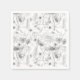Hand drawn black and white flower pattern of daisies, roses and ferns.