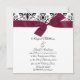 Black And White Damask And Burgundy Ribbon Invitation