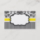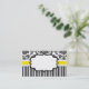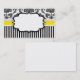 Elegantly presented business card having a black and white damask background with a yellow band. A label in the centre is available for text.