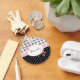 A trendy keychain with a chic black and white damask pattern on the top and sassy pinstripes on the bottom, divided by a girly pink floral frame. Personalise by adding your name. Perfect present for the stylish and fashionable woman who likes stripes and a damask damask pattern.