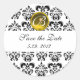 BLACK AND WHITE DAMASK MONOGRAM yellow topaz Classic Round Sticker