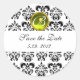 BLACK AND WHITE DAMASK MONOGRAM yellow topaz Classic Round Sticker