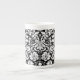 Black and white damask pattern bone china mug