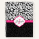 Black and white floral damask pattern and pink stripe and frame. Custom monogram