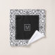 Black and white damask pattern and scalloped borders Bath Towel Set. The bath towel features an elegant black and white damask pattern and black bands on the short sides with scalloped edges. There is also a frame with your family name. The hand towel showcases a scalloped border around it while the wash cloth is black in the centre with a damask border and your monogram. You can personalise it with your family name and monogram.