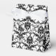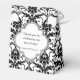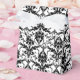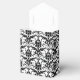 This is an especially pretty wedding favour box, with a vintage black damask over white pattern. The back has a white banner lined in grey with your customised text in black. Make it say whatever you'd like!