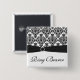 This black and white damask with faux ribbon and jewels Ring Bearer button matches the wedding invitation show below. The text is customisable and so is the shape and size of the button. If you need anything changed, please email niteowlstudio@gmail.com.