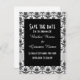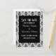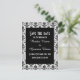 Pretty stylish modern white and black retro vintage damask pattern, stylish elegant formal traditional wedding save the date, easily personalise the bride and grooms names to the templates to create a unique custom tying the knot save the date for your special marriage occasions and celebrations. Visit the PERSONALIZED_ WEDDINGS STORE for matching coordinated wedding sets. CUSTOMIZE to adjust the text and font.