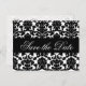 This black and white damask save the date post card matches the wedding invitation and other items shown below. If you require any other matching items in this design, please email your request to niteowlstudio@gmail.com.