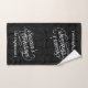 Personalised custom hand towel for the holidays. Express your holiday greeting in style with this dark black and charcoal grey background damask pattern with white swirly curly cursive "Season's Greetings". A sophisticated and posh expression of your personal style.