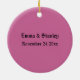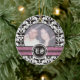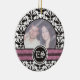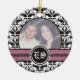 Black and white damask wedding photo ornament featuring your precious photo framed in black and white damask pattern black and pink bands and your initials in a circle.