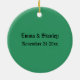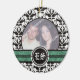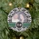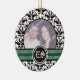 Black and white damask wedding photo ornament featuring your precious photo framed in black and white damask pattern black and mit green bands and your initials in a circle.