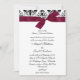Elegant Black And White Damask With Burgundy Maroon Ribbon - Wedding Invitation