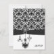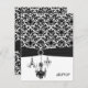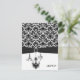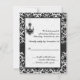 This black and white damask with chandeliers reply card has a PRINTED ON ribbon and jewels on it that matches the wedding invitation shown below. If you requre any matching products, please email your request to niteowlstudio@gmail.com.