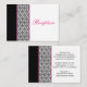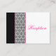 This black and white damask reception enclosure card has accents of hot pink on it that matches the wedding invitation shown below. You can also use it as a map or directions card by changing the text accordingly. If there are any other matching items you require, please email your request to niteowlstudio@gmail.com.