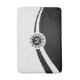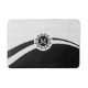 Elegant white and black dynamic shapes with floral damasks and customisable monogram inside white and black circle frame.