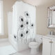 Black and white / noir design featuring delicate off-white flowers with long thin black stems and a black centre on a white background