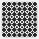 A bold, graphic pattern of interlocking black and white diamond shapes. The white diamonds each contain a small black diamond making black the dominant colour of the original design.