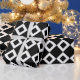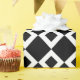 A bold, graphic pattern of interlocking black and white diamond shapes. The white diamonds each contain a small black diamond making black the dominant colour of the original design.